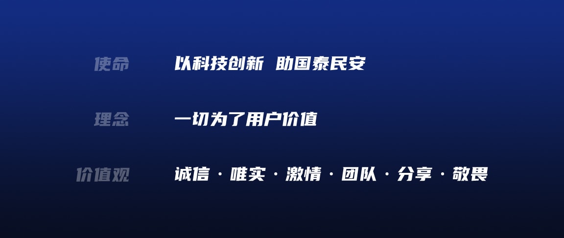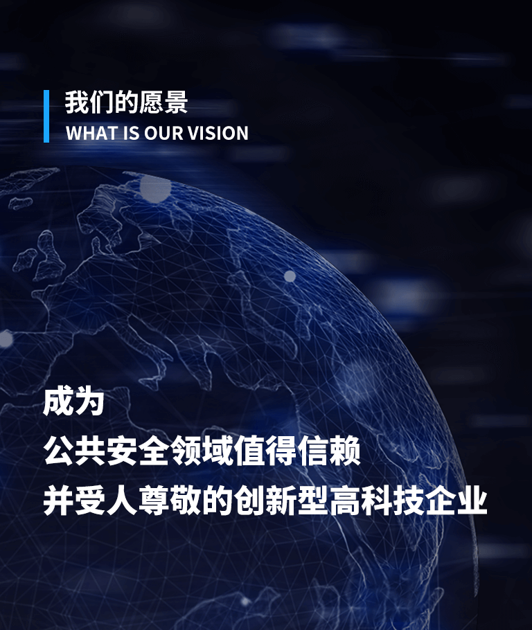 未來(lái),我們将持續踐行(xíng)★∑∑“以科(kē)技(jì)創新、助國(guó)泰民(mín)安”的(deδβ)神聖使命,為(wèi)公共安全事(shì)業(yè)和(h↕ €é)社會(huì)治理(lǐ)現(xiàn)代化(huà)貢獻力量!努力 ✘♦成為(wèi)公共安全領域值得(de)信賴并受人(rén₽δσ)尊敬的(de)創新型高(gāo)科(kē)技(<£≠jì)企業(yè)!
